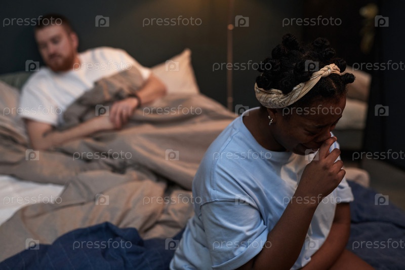 Наблюдение за темнокожей женщиной, плачущей во время конфликта в отношениях мужчина