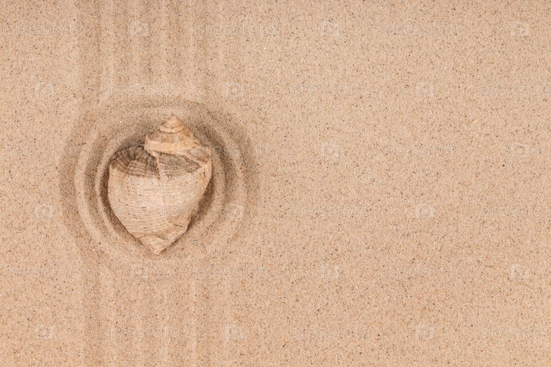 Морская раковина, лежащая в центре круга из песка. с пространством для текста