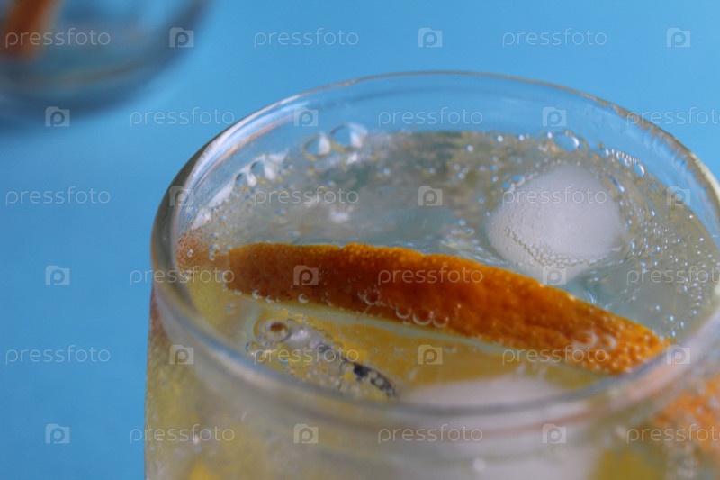 Шаг за шагом инструкции по изготовлению лимонады.Стадия 3.Приготовить свежий лимонад с водяным льдом и фруктовым крупным планом на голубом фоне.Летние освежающие напитки.Термальный прибор