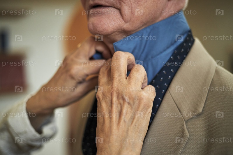 Регулирующий воротник для пожилого джентльмена в синей рубашке