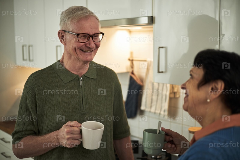 Старшая пара наслаждается утренним кофе на кухне