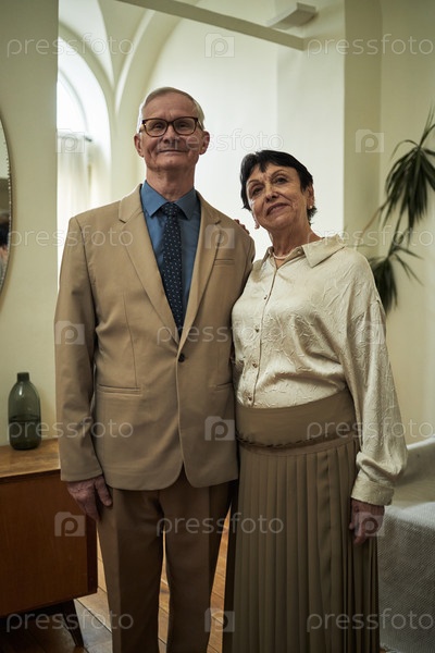 Портрет красивой пожилой пары, стоящей в гостиной