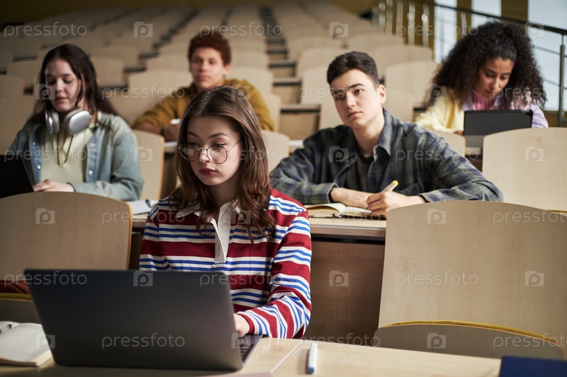 Мультиэтнические студенты университетов посещают лекции и учатся в классе