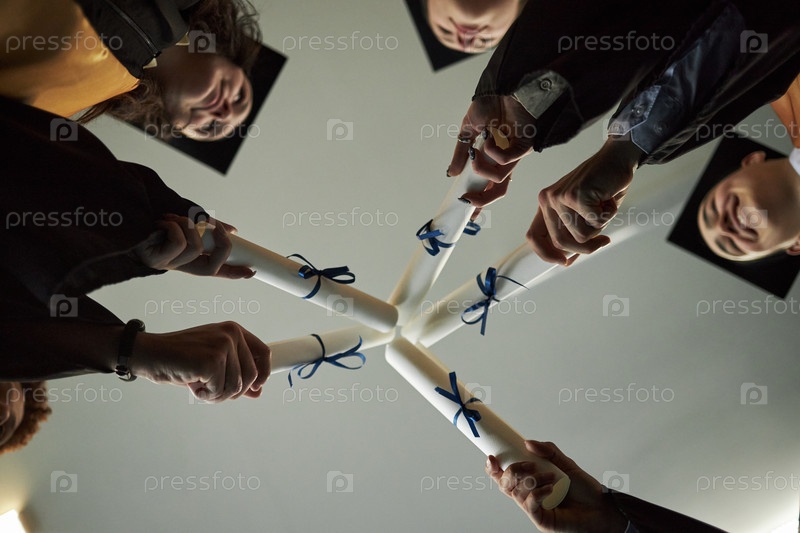 Мультиэтнические молодые выпускники, имеющие дипломы и празднующие достижения