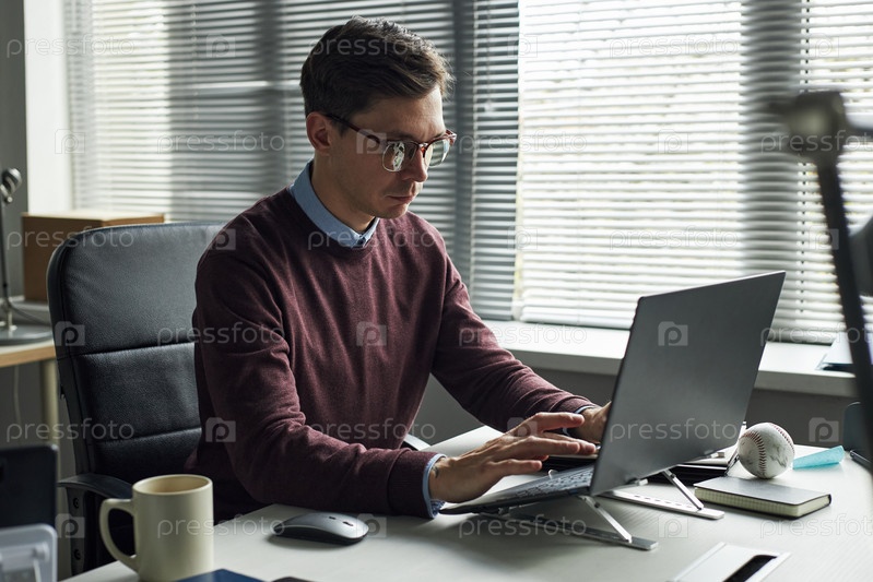 Человек, работающий на ноутбуке в современной офисной обстановке