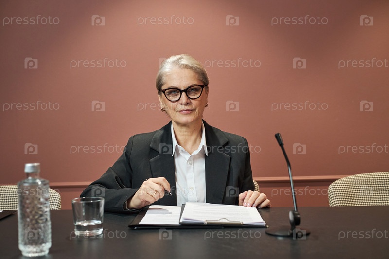 Портрет старшей женщины-политики, присутствующей на встрече пресс-конференции