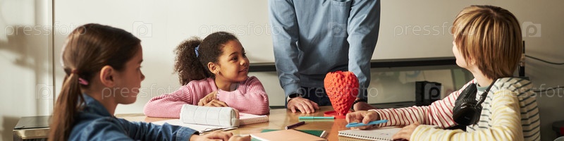 Мужчина, обучающий разных детей в классной обстановке