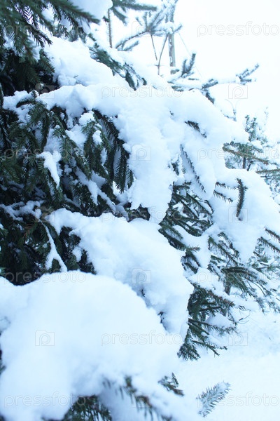 Ветви в снегу сближаются. вертикальная фотография