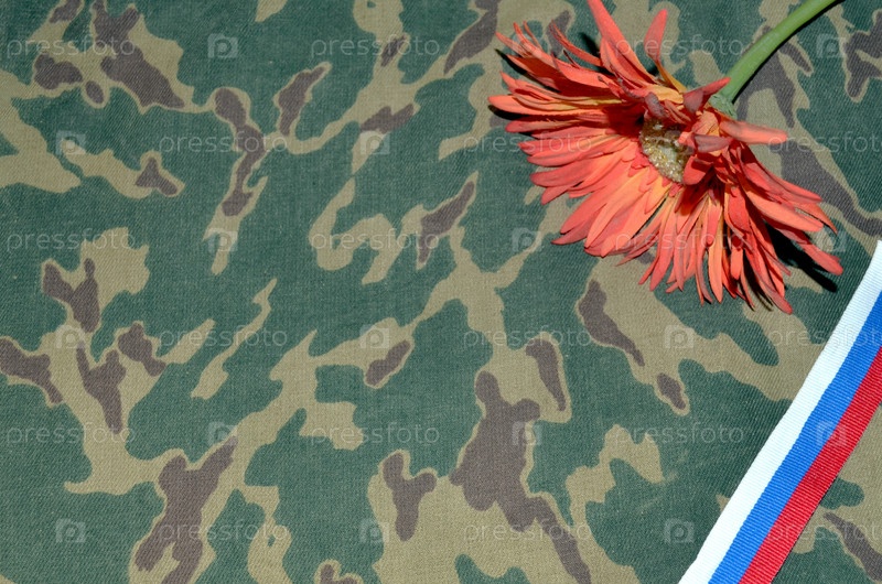 Военный фон, цветы, триколорная лента