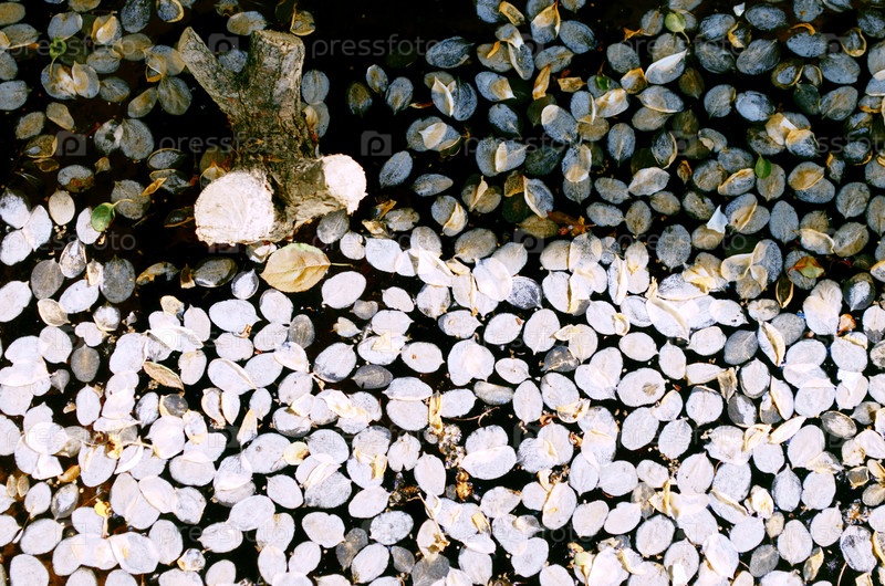 Опавшие лепестки яблок на поверхности воды