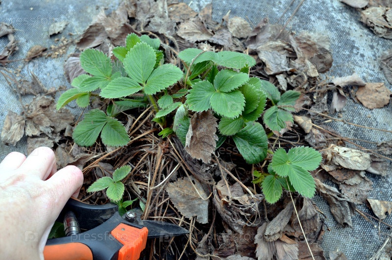 Обрезание весной сухих листьев на клубнике (травы)