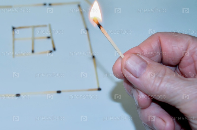 Дом спичек, горящая спичка, опасность игры с спичками