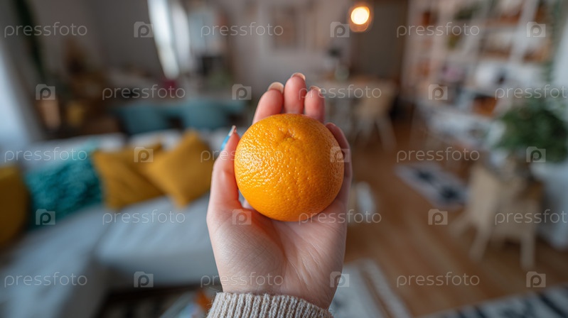 Женская рука держит свежеспелый апельсиновый фрукт