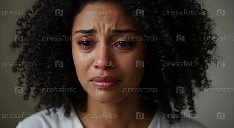 Печальная молодая женщина плачет со слезами