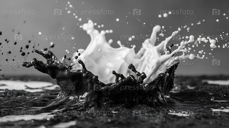 Высокоскоростной взрыв контрастирующих черно-белых жидких капель