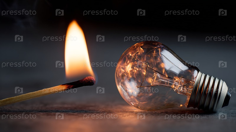 Закрытие горящей спички, освещающей лампу накаливания