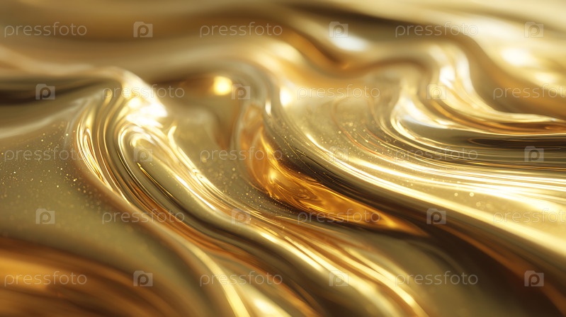 Гладкое, текущее жидкое золото образует роскошный волнистый абстрактный фон