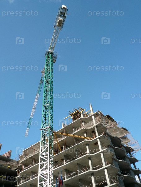 Дом развивается днем с помощью крана