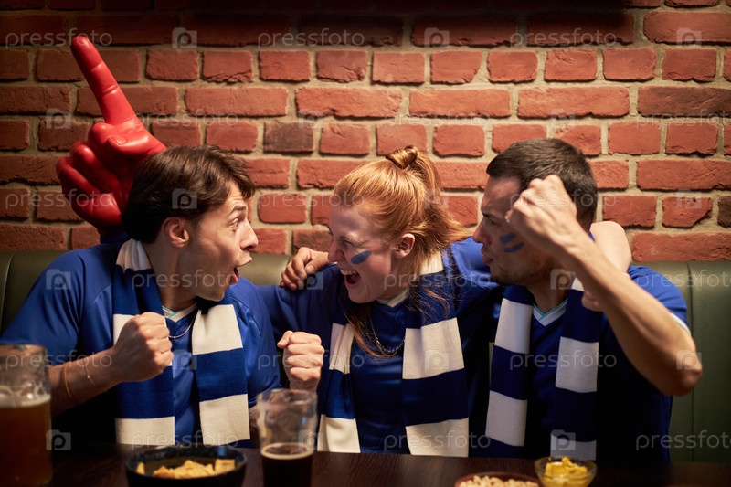 Группа молодых болельщиков, празднующих победу на футбольном матче в помещении