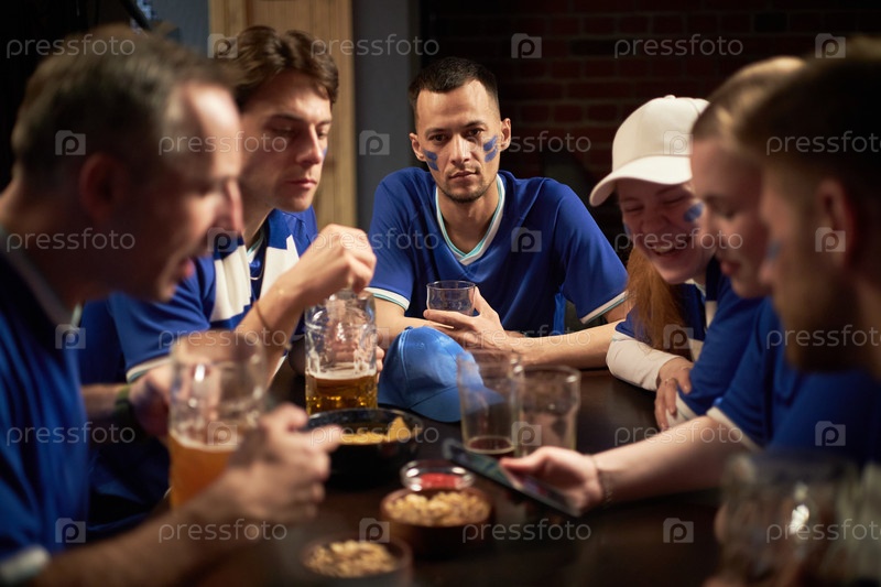 Группа многонациональных болельщиков вместе смотрят футбольный матч