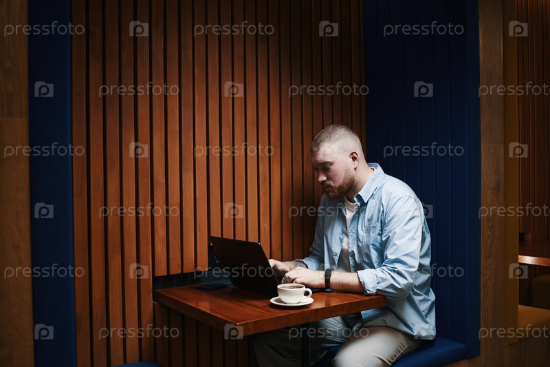 Работа на ноутбуке в Modern Cafe Man Booth