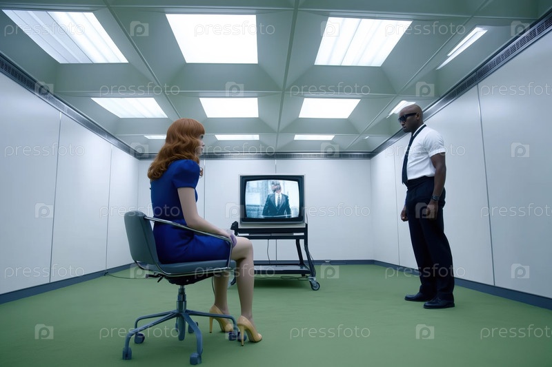 Просмотр телевизионного экрана в современной офисной комнате