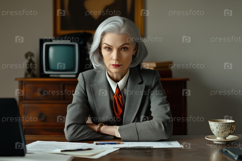 Портрет пожилой женщины, сидящей за рабочим столом