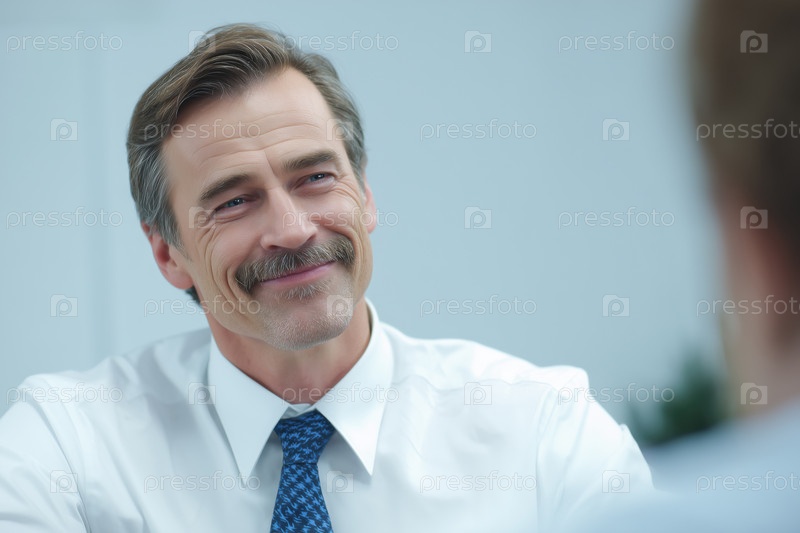 Улыбающийся бизнесмен участвует в офисной беседе