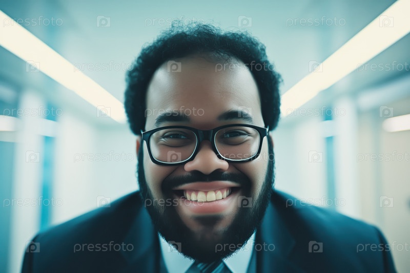 Портрет улыбающегося мужчины с очками в современном офисе