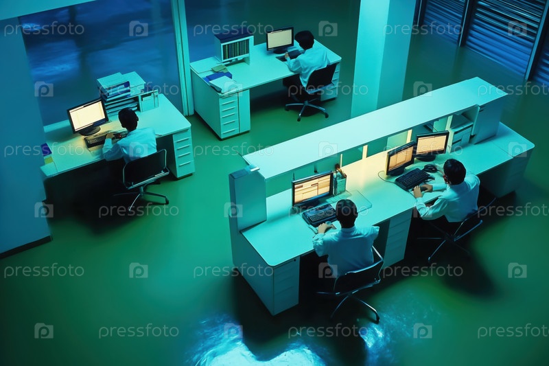 Люди, работающие в современном офисе с компьютерными экранами