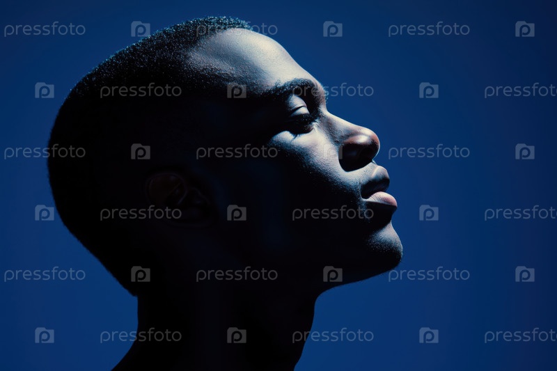 Профиль афроамериканского мужчины в драматическом синем освещении