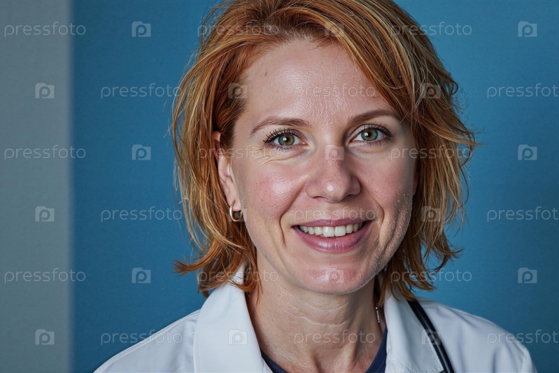 Портрет женщины средних лет Доктор улыбается в камеру