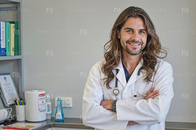 Портрет молодого взрослого мужского врача, улыбающегося и уверенно стоящего