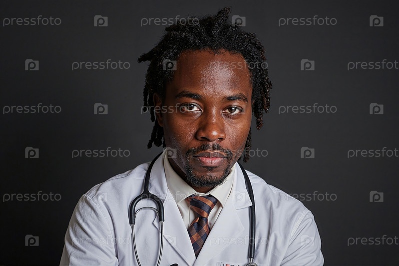 Портрет молодого взрослого чернокожего врача, носящего стетоскоп и выглядящего уверенным