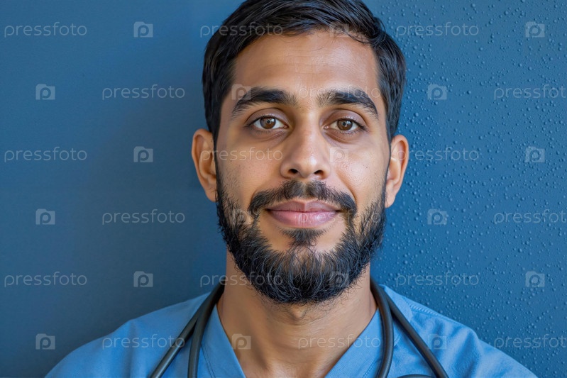 Портрет молодого южноазиатского мужчины-врача, улыбающегося и смотрящего на камеру
