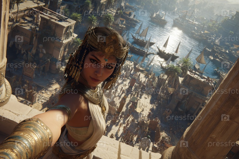 Портрет молодой взрослой женщины с Ближнего Востока, делающей селфи над древней гаванью