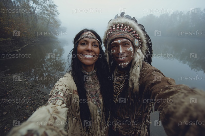 Портрет молодой взрослой индейской пары, улыбающейся от Misty Lake Outdoors