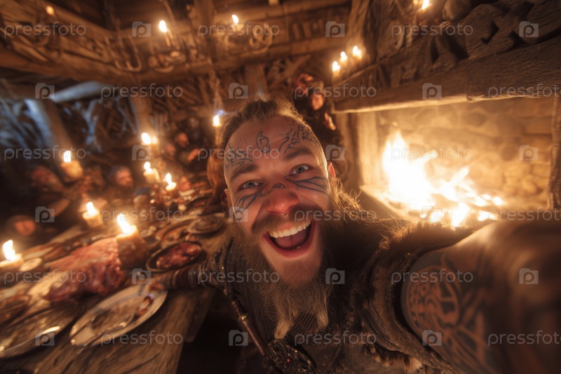 Портрет молодого взрослого мужчины, улыбающегося во время фотосессии на празднике