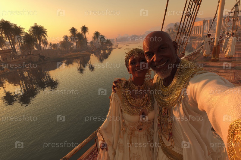 Портрет чернокожей пары среднего возраста, улыбающейся и делающей селфи в Риверсайде