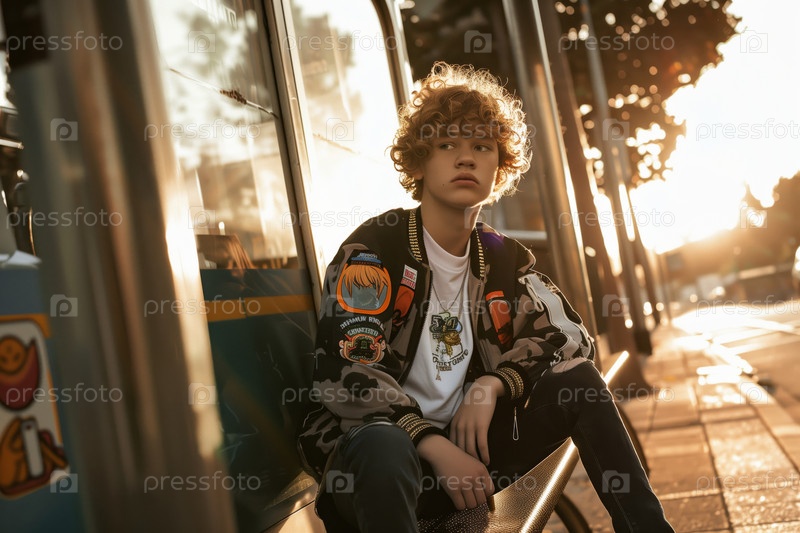 Мальчик-подросток сидит на улице, отражая городской образ жизни поколения Z