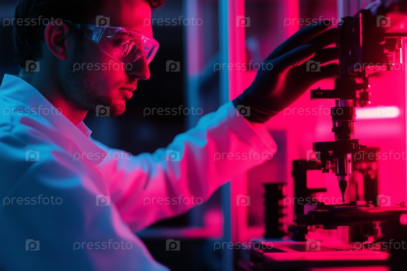 Молодой человек, работающий с лабораторным оборудованием во время научного эксперимента