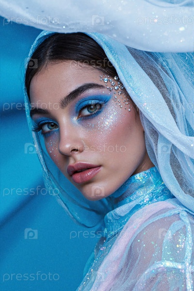 Портрет молодой взрослой женщины, которая носит блестящий макияж и выглядит уверенно