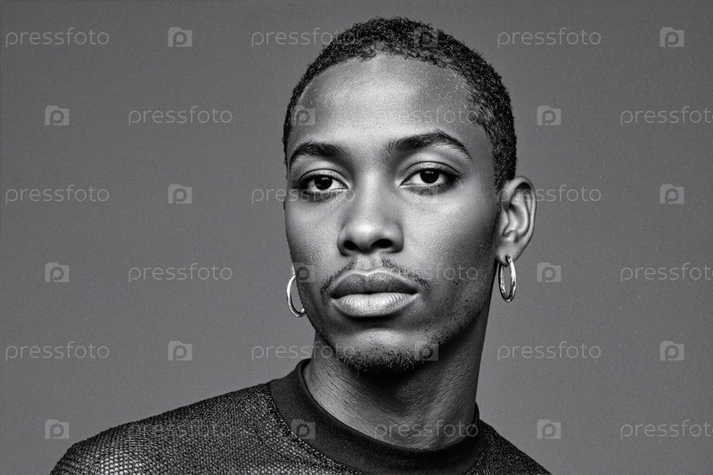 Портрет молодого взрослого чернокожего мужчины, уверенно глядящего в камеру