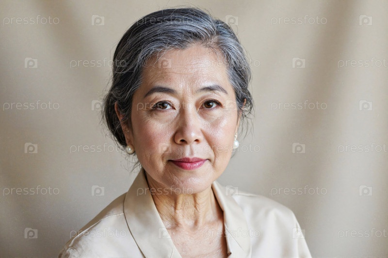 Портрет старшей азиатской женщины, мягко улыбающейся и смотрящей на камеру