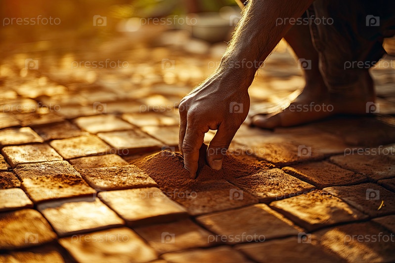 Рука собирает свежемолотый кофе на открытом воздухе при восходе солнца Male