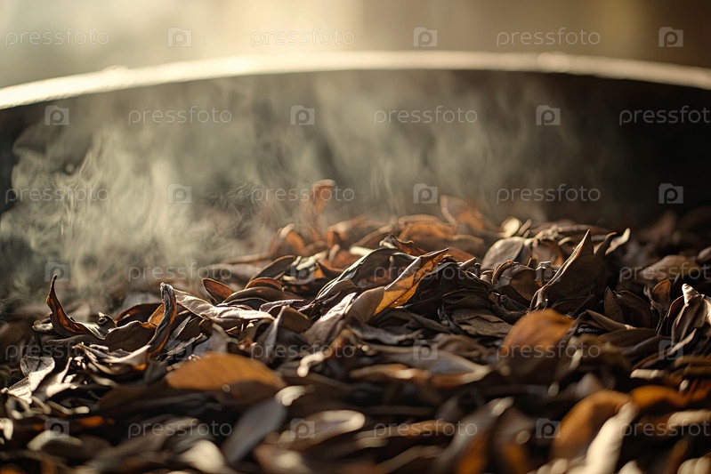 Выпаривание сушеных чайных листьев, высвобождающих аромат в традиционной приготовлении чая