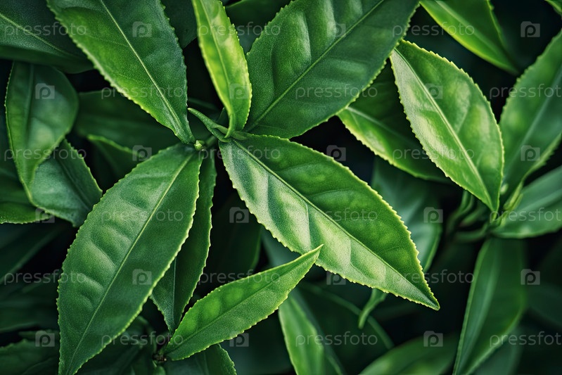Свежие зеленые чайные листья растут, представляя традиционную культуру чая