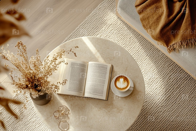 Молодой взрослый отдыхает с кофе и книгой в уютной домашней обстановке