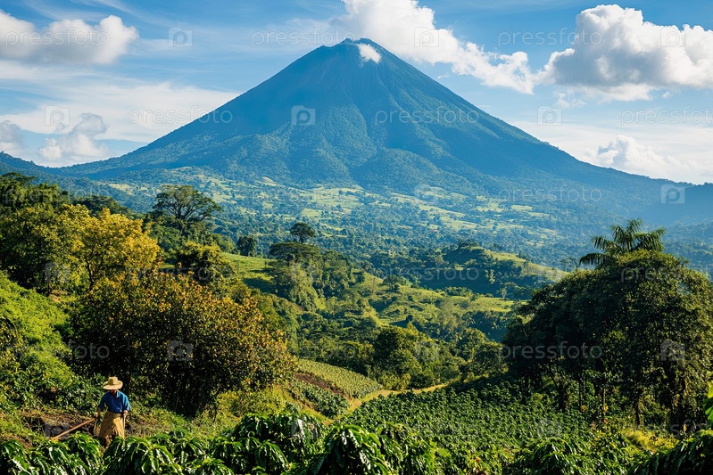 Уборка кофейных растений на плантации Lush Plantation возле вулкана Man