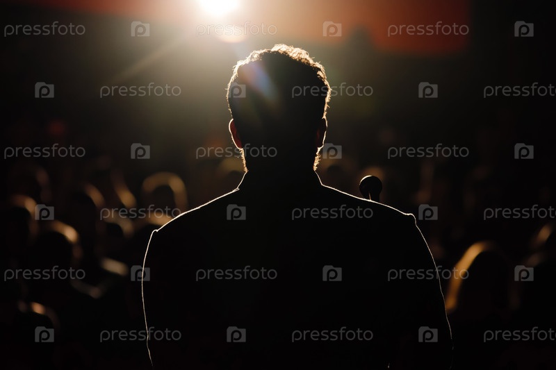 Человек, выступающий на сцене перед аудиторией на мероприятии